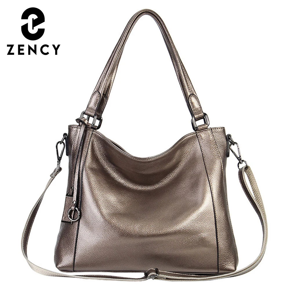 Zency Soft Skin 100% Genuine Leather Fashion Women Shoulder Bag Black Handbag Large Capacity Lady Messenger Crossbody Purse