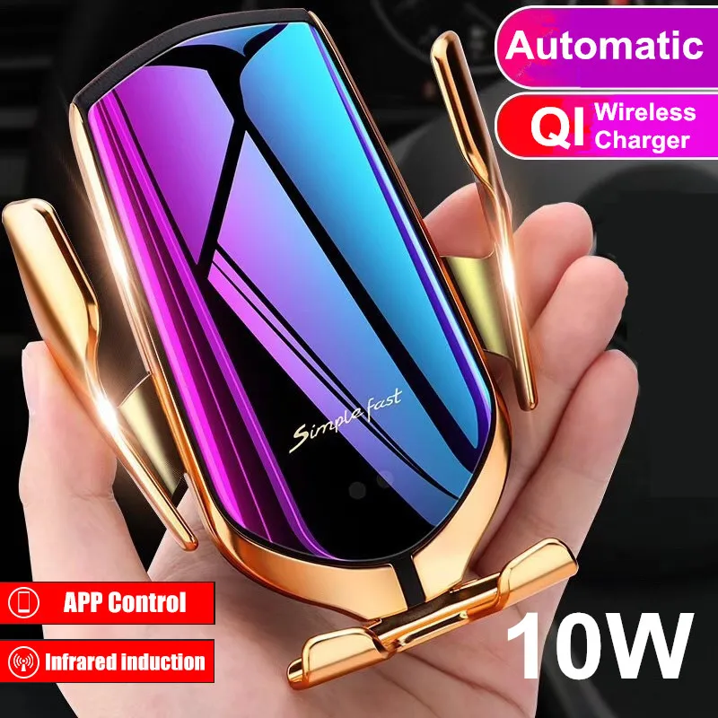10W Wireless Charger Car Holder Automatic Clamping Smart Infrared Sensor Qi GPS Air Vent Mount Mobile Phone Bracket Stand