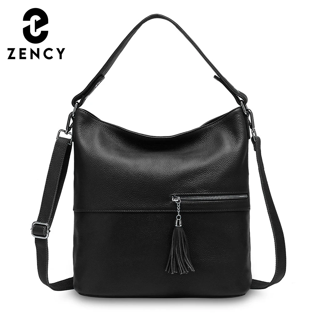 Zency Beauty Design Women Shoulder Bag With Tassel 100% Genuine Leather Handbag Apricot Fashion Lady Crossbody Purse Black Grey