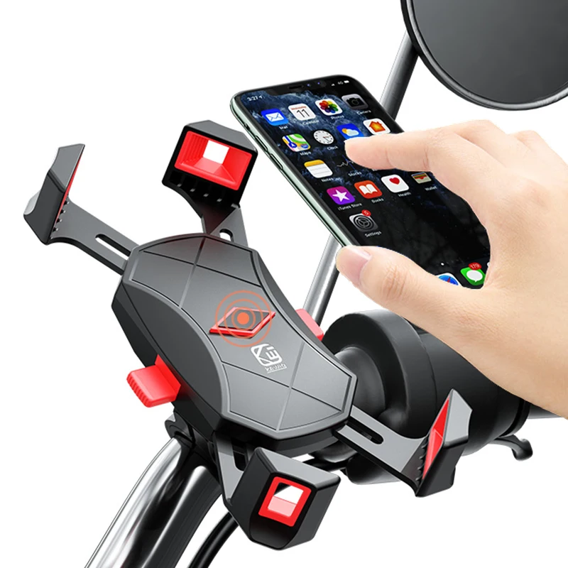 Bicycle Motorcycle Phone Holder Automatic Lock Handlebar Mirror Mount Bracket 360 Rotation GPS Bike Stand For iPhone HuaWei